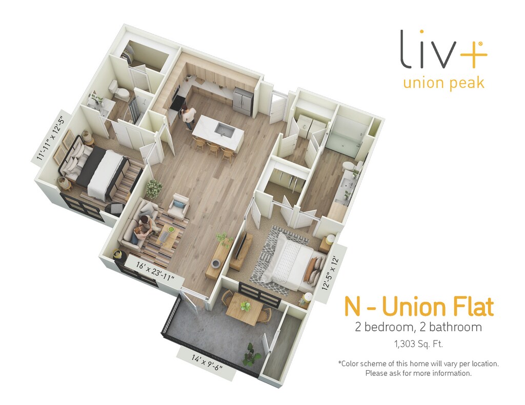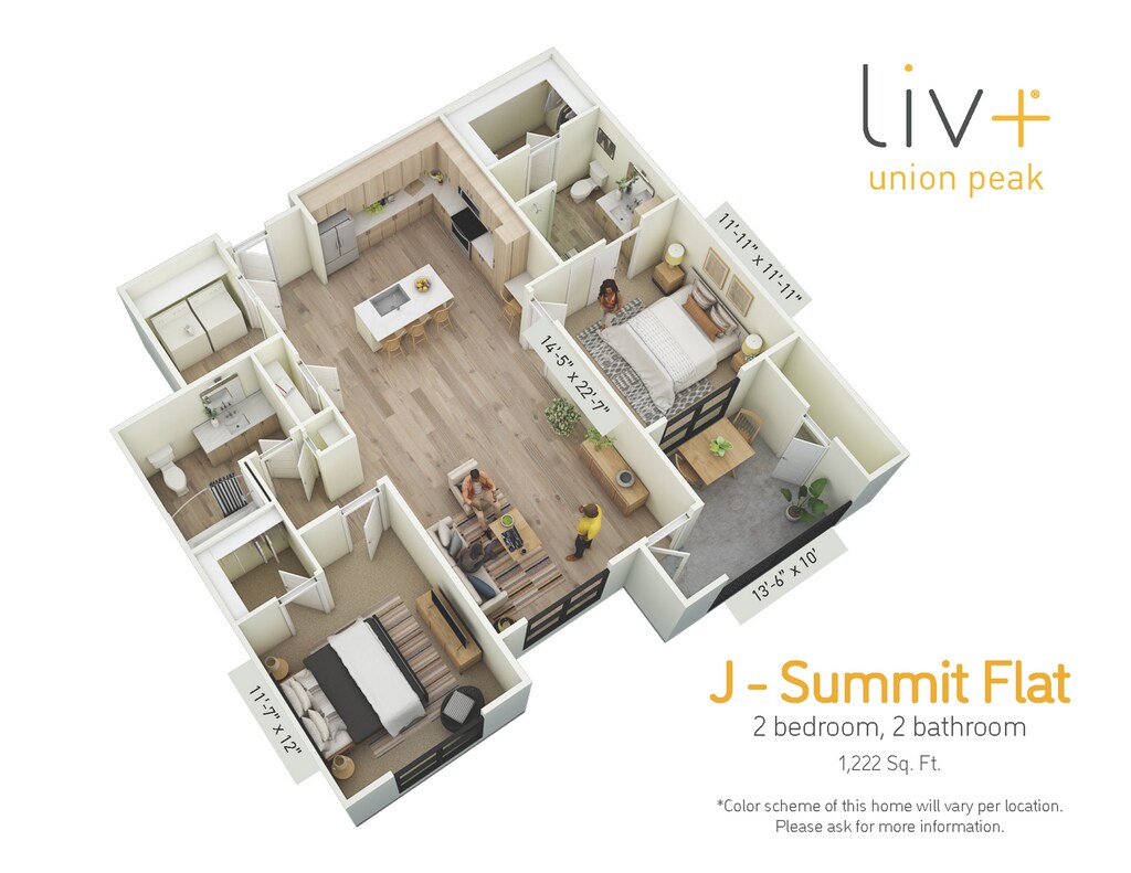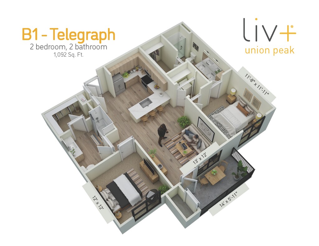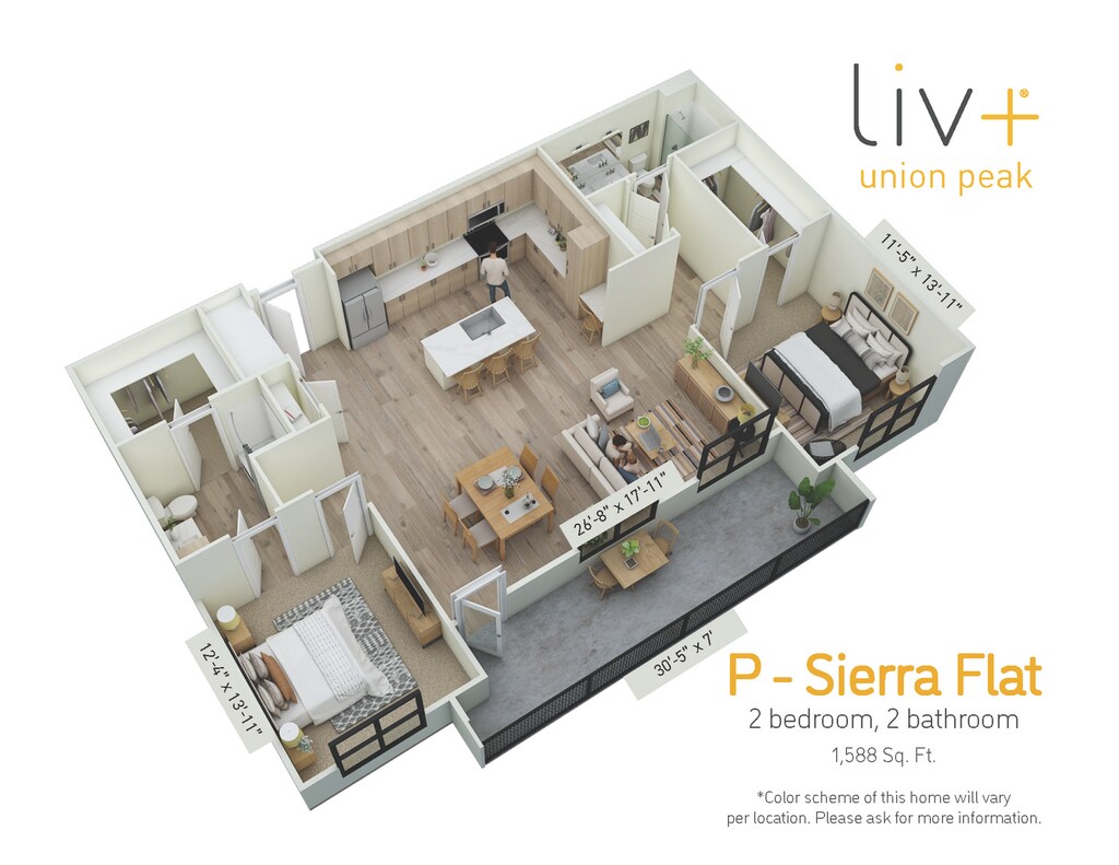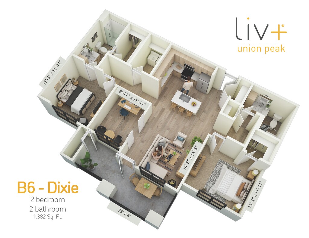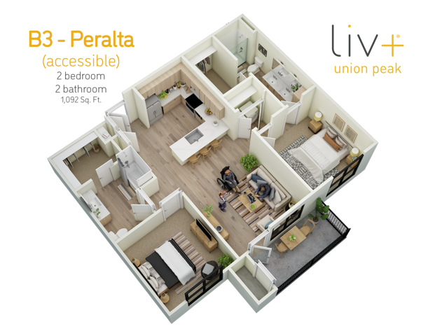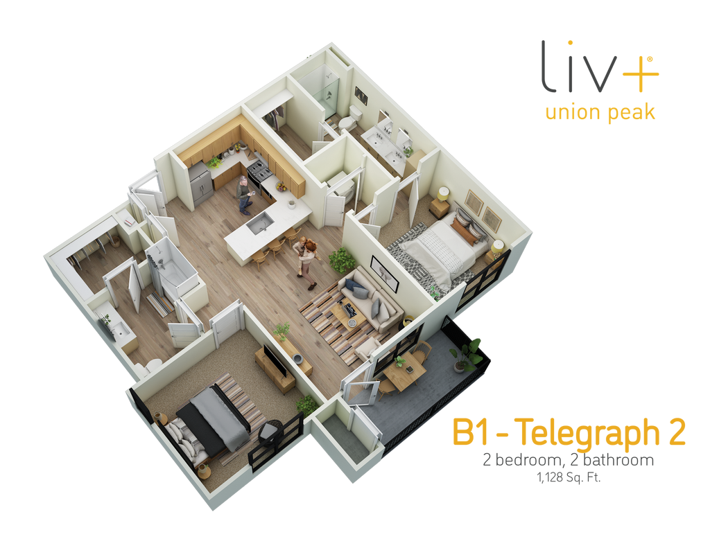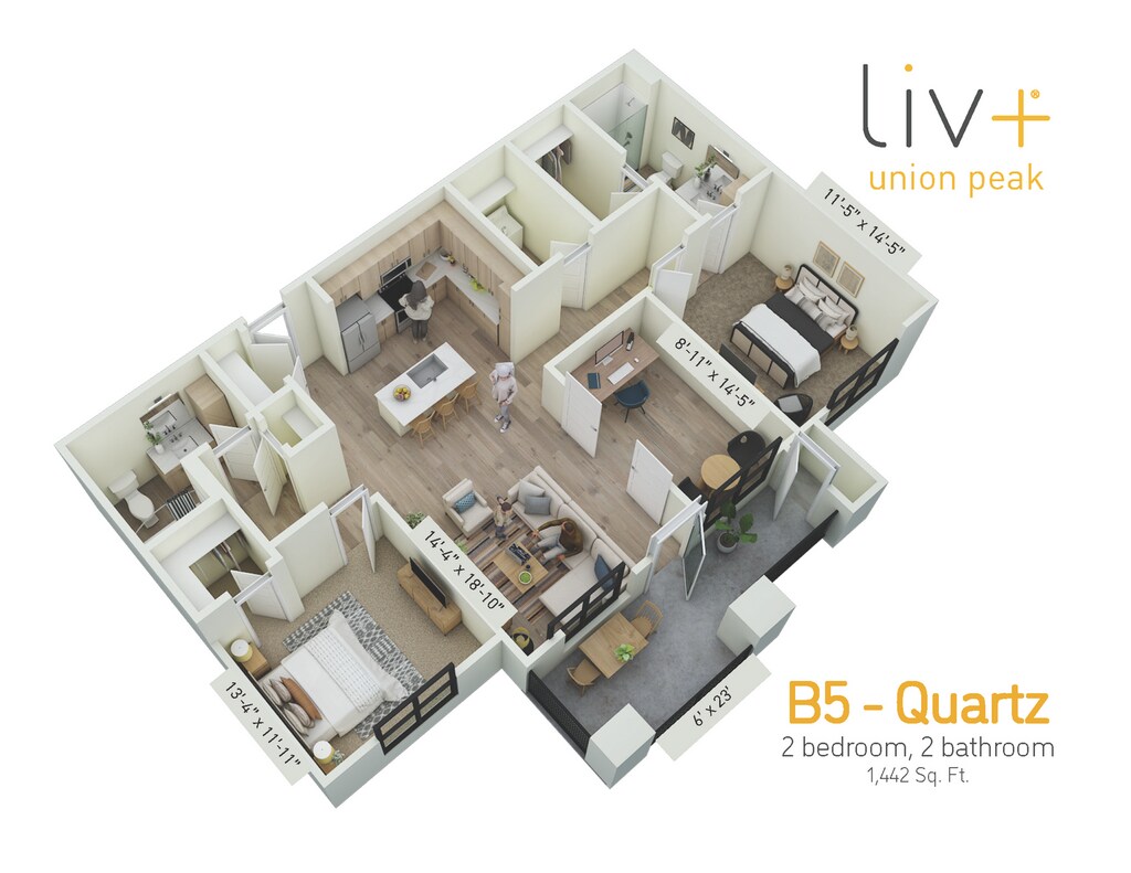 Liv+ Union Peak ofrece apartamentos de Estudio a 3 Dormitorios desde $1,499 con 580–1,735 pies cuadrados. Aquí está el precio actual y la disponibilidad: