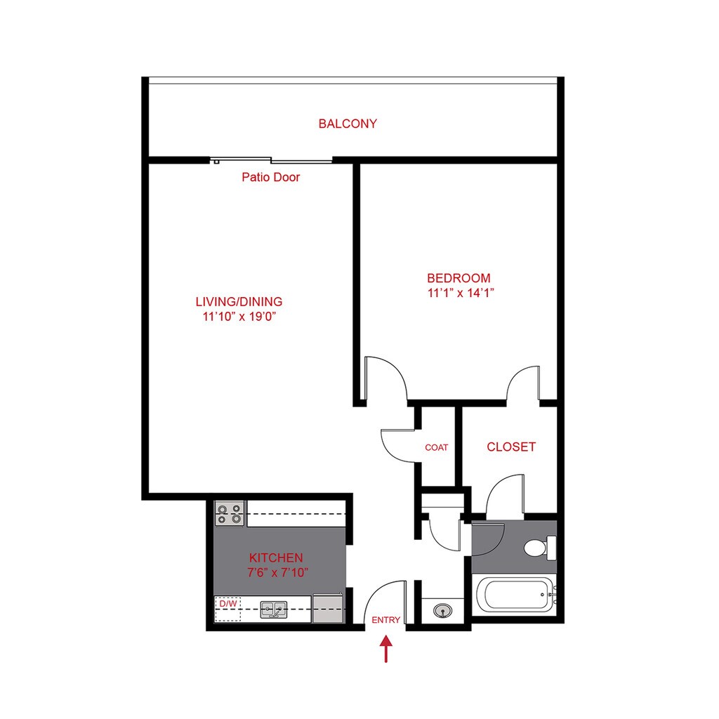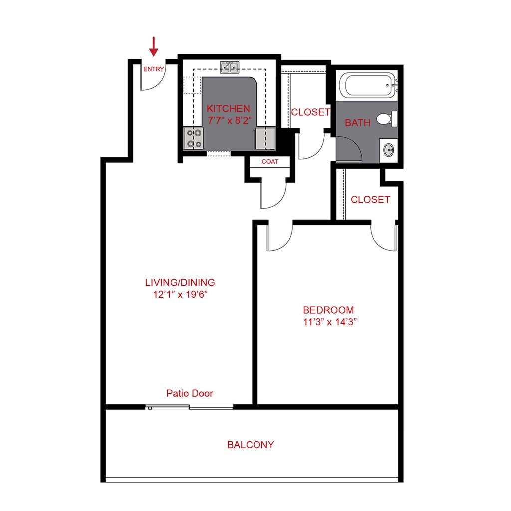 Modelo de apartamento: 1 Bed 1 Bath1 Dormitorio, 1 Baño, 650 sq ftDisponible Ahora![]()