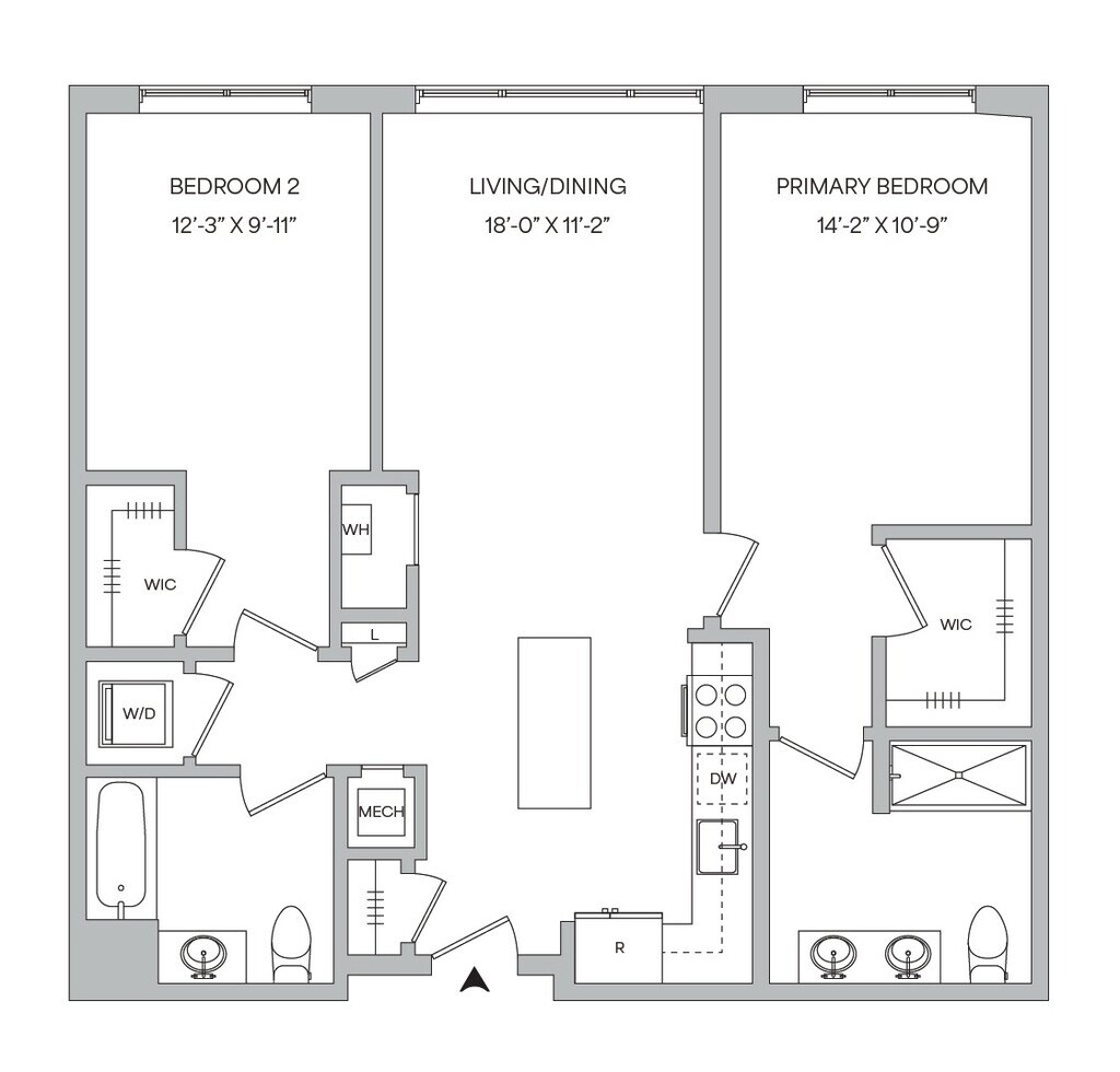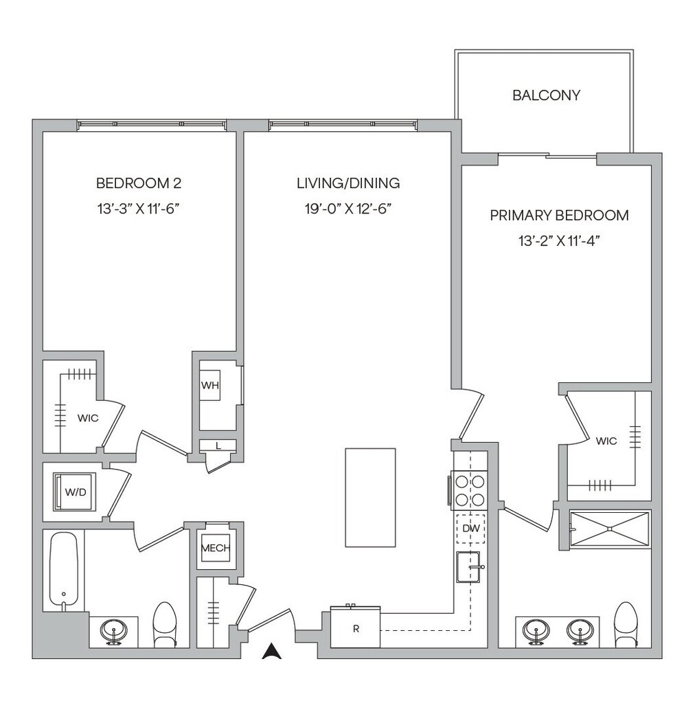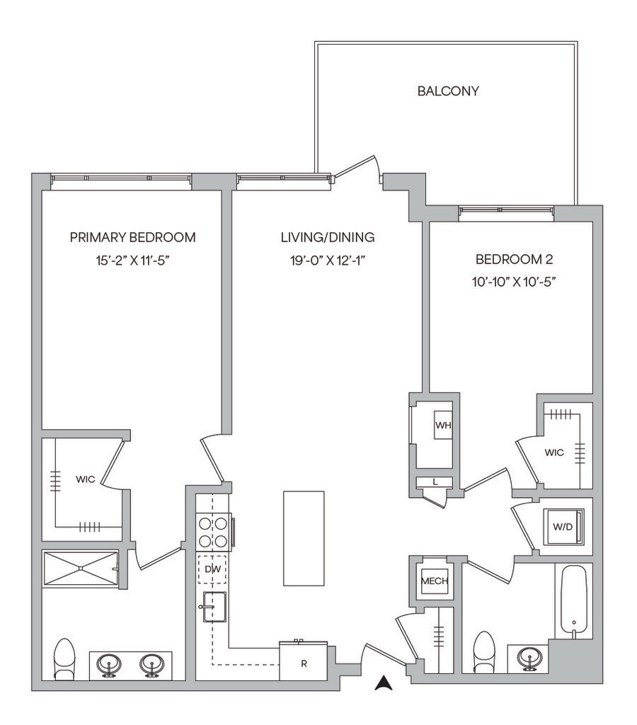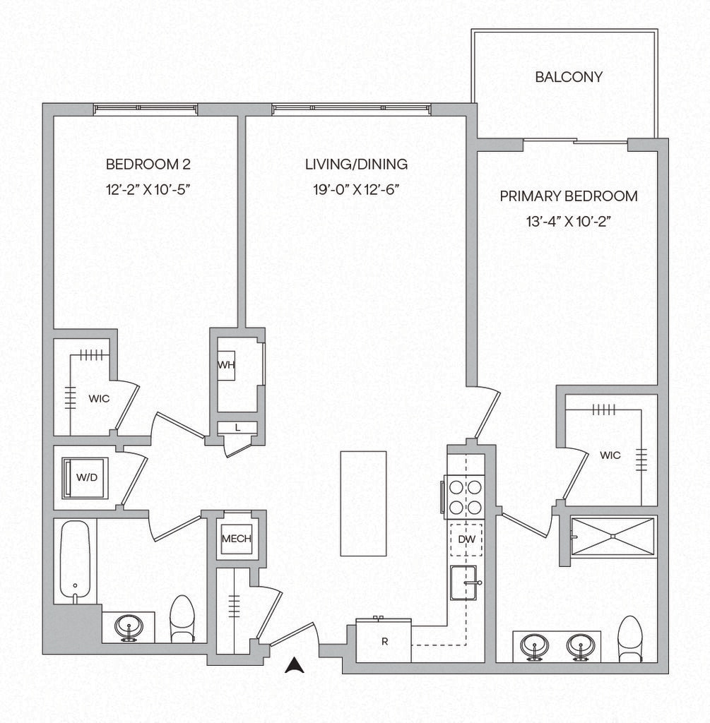 Modelo de apartamento: A20 - 1BR 1BA (751 SF)Desde $2,4501 Dormitorio, 1 Baño, 751 sq ftDisponible Ahora![]()