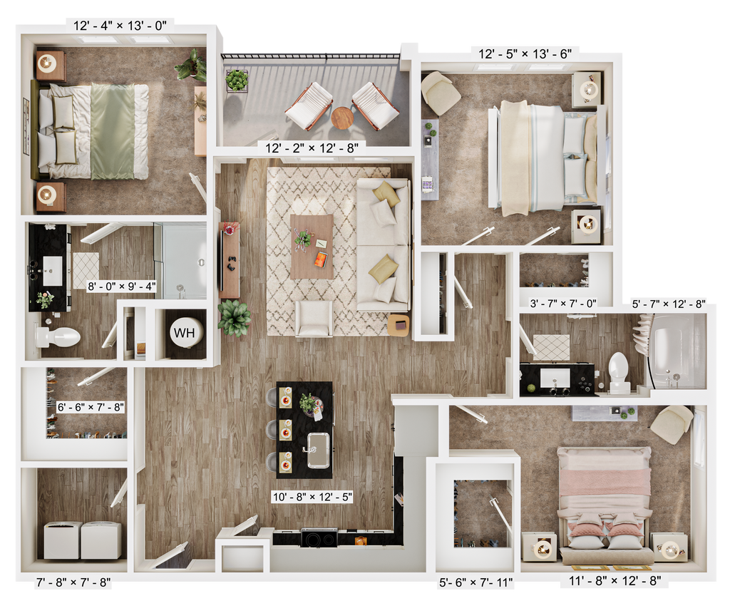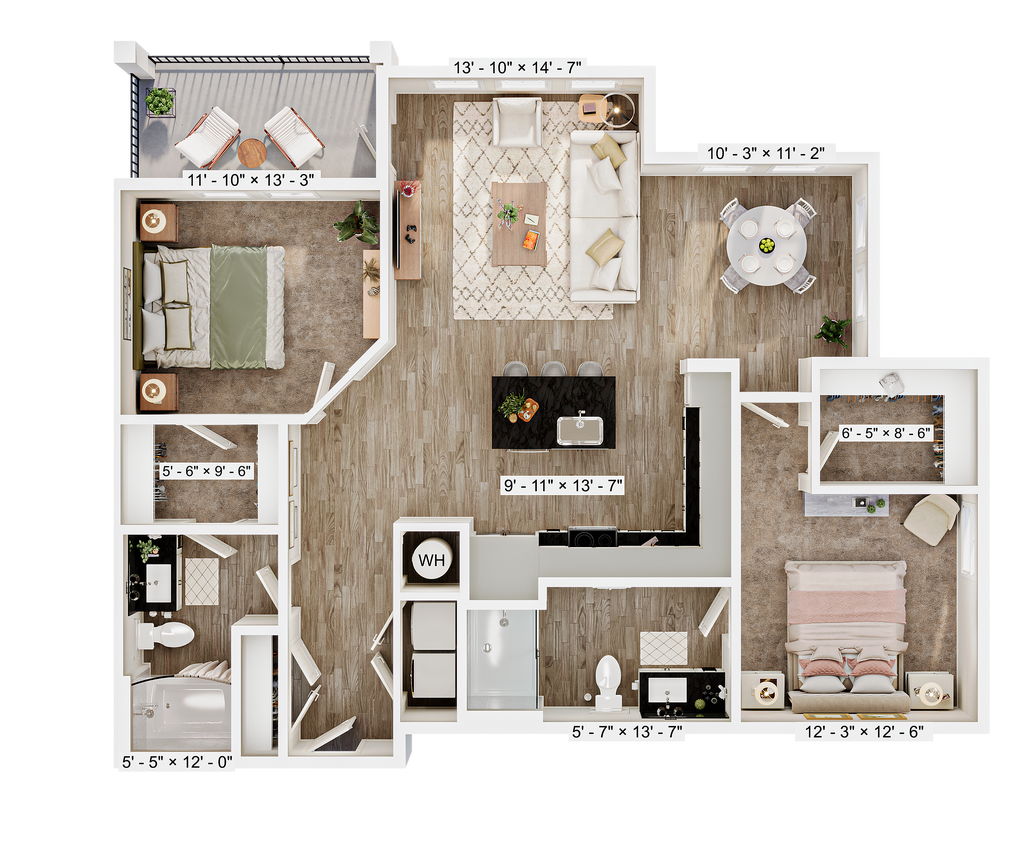 Modelo de apartamento: A3Desde $1,5551 Dormitorio, 1 Baño, 824 sq ftDisponible Ahora![]()