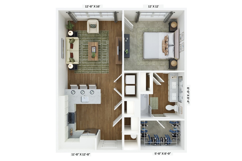 Modelo de apartamento: A6Desde $1,4191 Dormitorio, 1 Baño, 795 sq ftDisponible AhoraLos planos son representaciones artísticas. Todas las dimensiones son aproximadas. El producto y las especificaciones reales pueden variar en tamaño o detalle. No todas las características están disponibles en cada vivienda en alquiler. Por favor, consulta con un representante para obtener más detalles.
