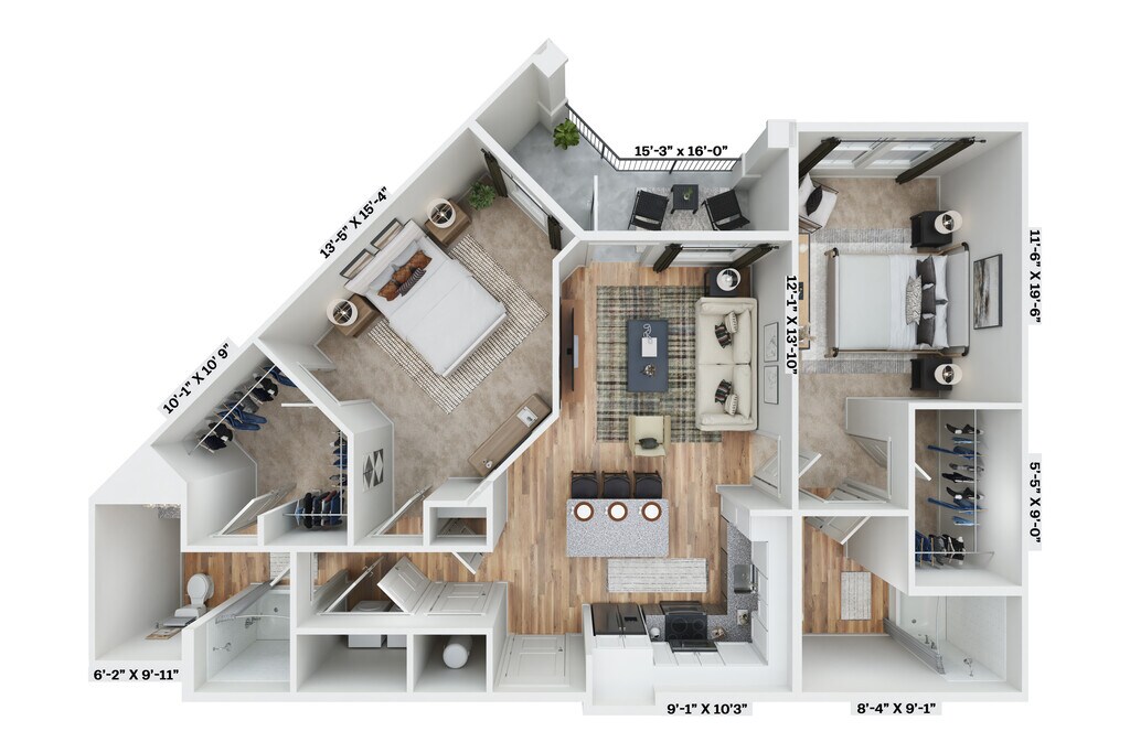 Modelo de apartamento: A2Desde $1,6461 Dormitorio, 1 Baño, 985 sq ftDisponible Ahora![]()