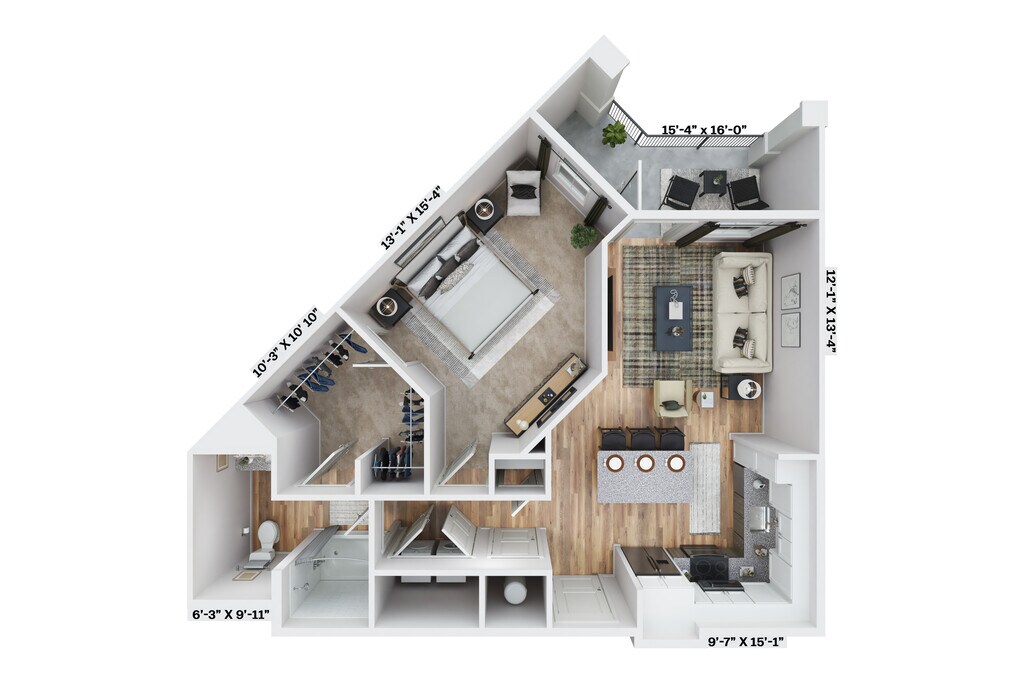 1 Dormitorio, 1 Baño, 985 pies²Disponible AhoraGalería del Modelo