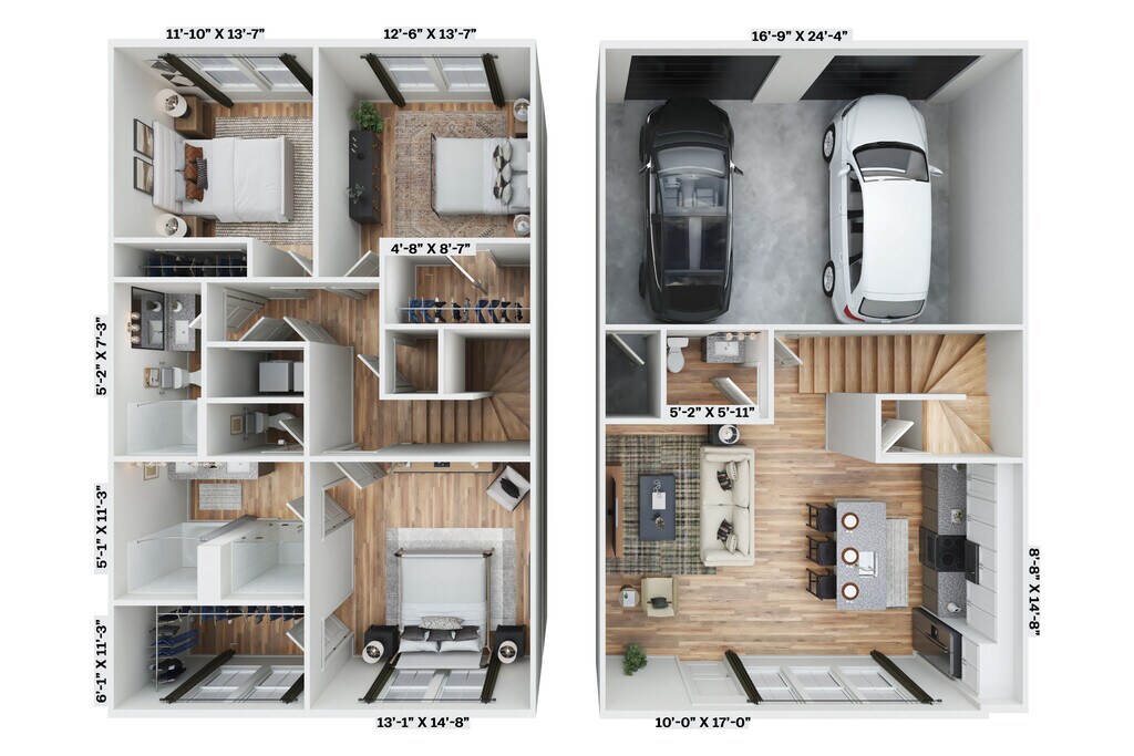 - Pisos de vinilo de lujo en dormitorios y armarios en todas las unidades de casas adosadas.