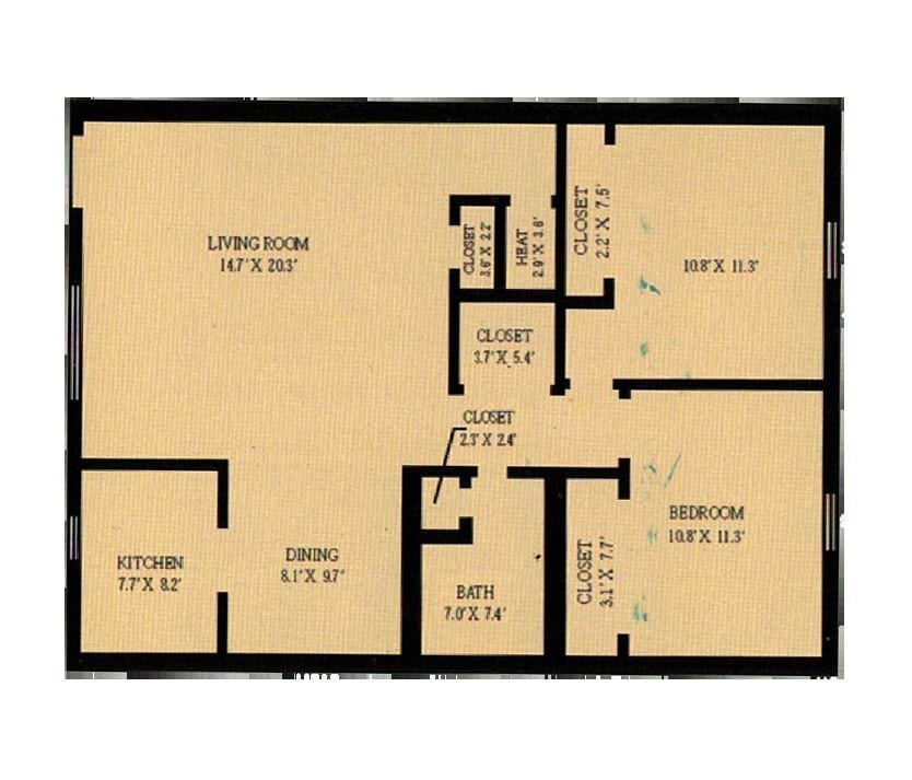 1 Dormitorio, 1 Baño, 700 pies²Galería del Modelo