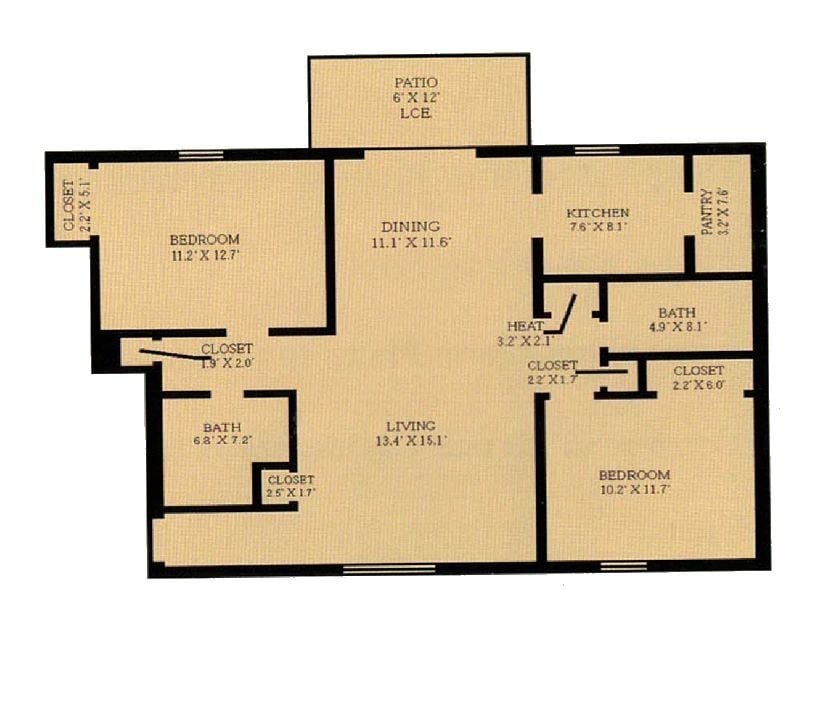 Modelo de apartamento: 2x2ELlame para Precios2 Dormitorios, 2 Baños, 885 sq ftNo Disponible2x2E - Plano 1 3 Dormitorios