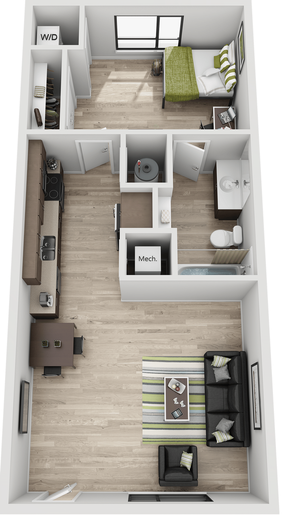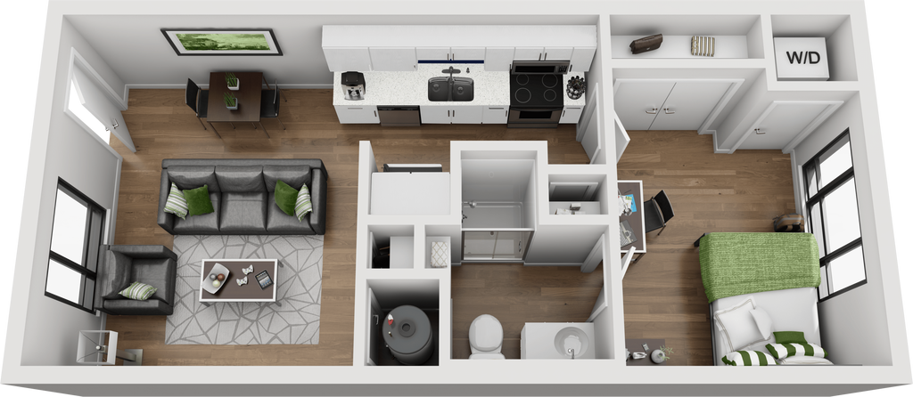 1 Dormitorio, 1 Baño, 540 pies²Disponible AhoraGalería del Modelo