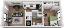 1 Dormitorio, 1 Baño, 540 pies²Disponible August 13, 2026Galería del Modelo