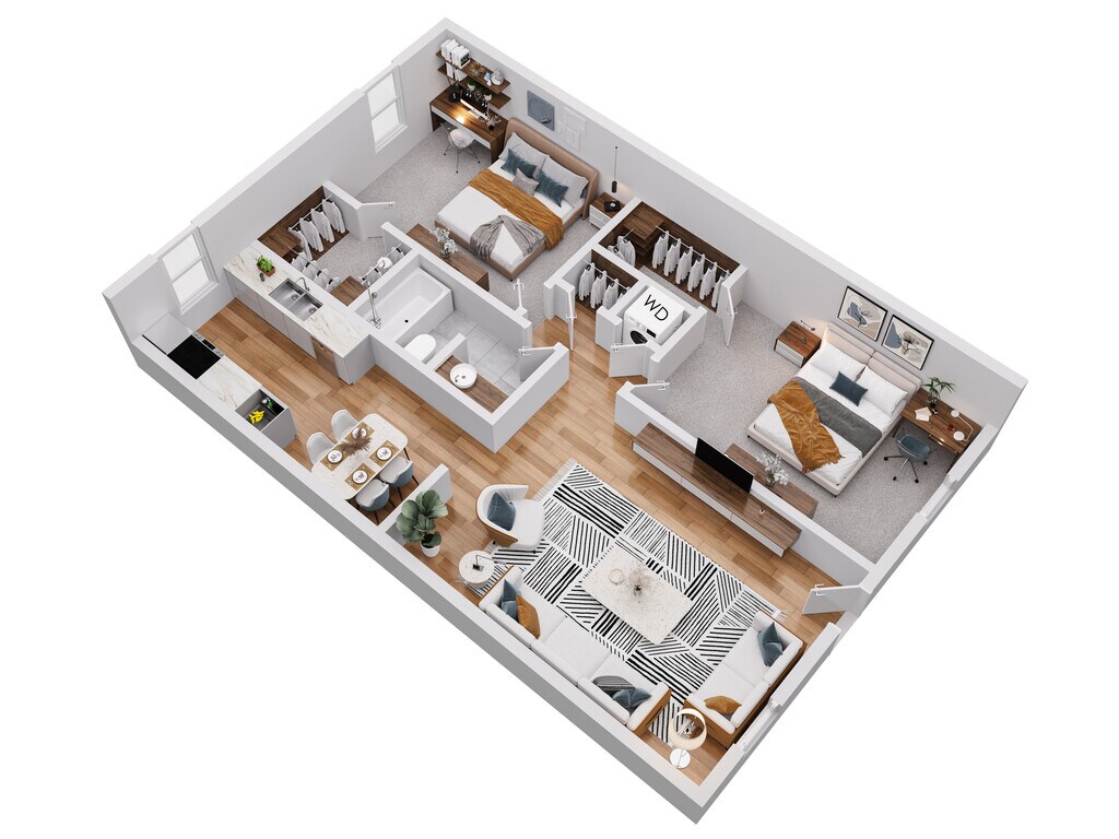 Modelo de apartamento: 1x1Desde $7901 Dormitorio, 1 Baño, 660 sq ftDisponible November 28, 2025PlanosFotos![]()