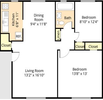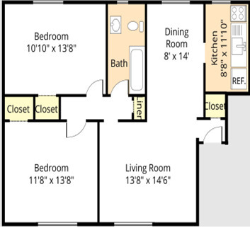 2 Dormitorios, 1 Baño, 850 pies²El más grandeEsta opción tiene las unidades más grandes para este modeloGalería del Modelo