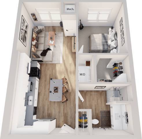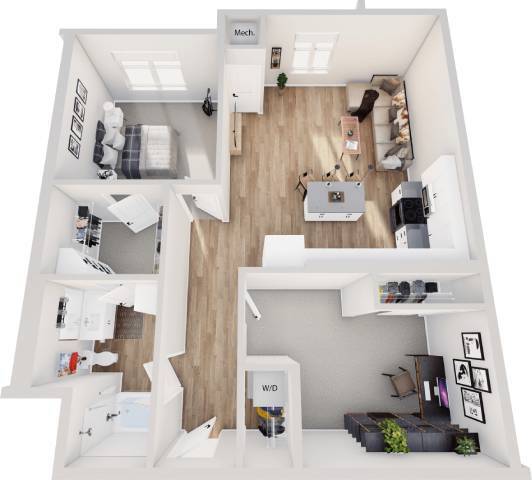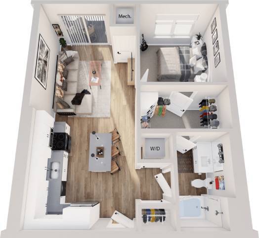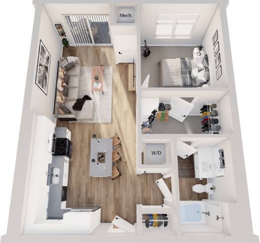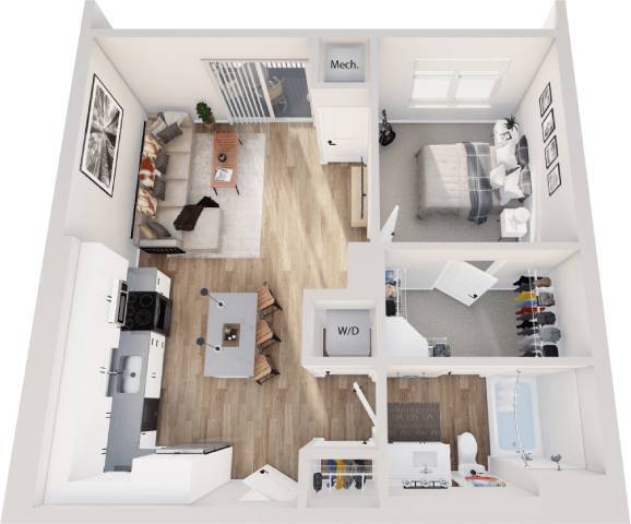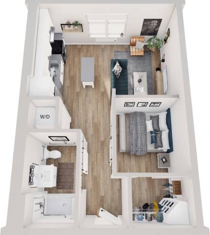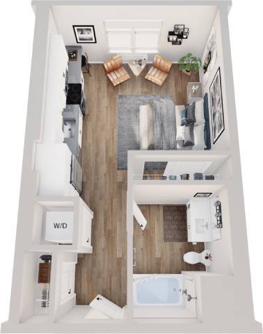 Modelo de apartamento: Burwick | AlcoveDesde $1,4151 Dormitorio, 1 Baño, 556 sq ftDisponible Ahora![]()