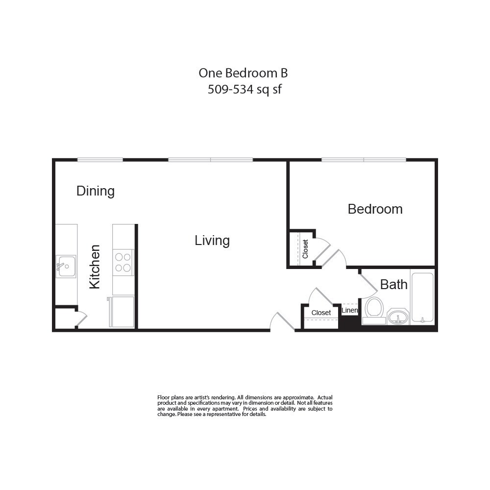 Modelo de apartamento: One Bedroom B1 Dormitorio, 1 Baño, 525-534 sq ftDisponible AhoraLos planos de la planta son una interpretación artística. Todas las dimensiones son aproximadas. Los tamaños o el detalle del producto real y sus especificaciones pueden variar. No todas las características están disponibles en todos los hogares para rentar. Los precios y la disponibilidad están sujetos a cambios. El alquiler que se muestra es mensual. Se pueden aplicar ciertos cargos, por ejemplo, entrega de paquetes, recolección de basura, agua, servicios, etc. Depositos varian. Consulta a un representante para conocer detalles.