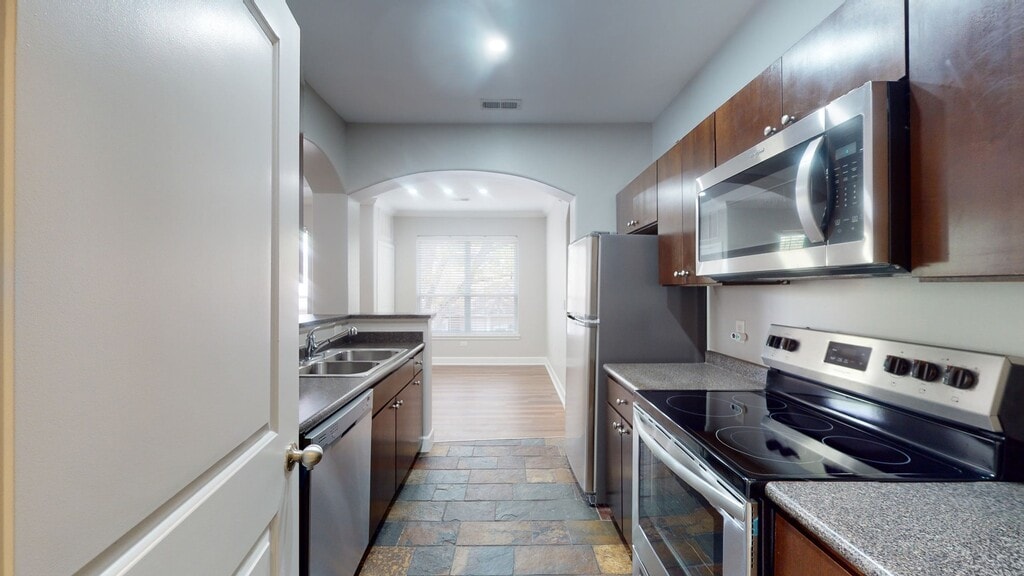 Modelo de apartamento: Plan F (A1AD)Desde $2,6991 Dormitorio, 1 Baño, 1046 sq ftDisponible AhoraLos planos son representaciones artísticas. Todas las dimensiones son aproximadas. El producto y las especificaciones reales pueden variar en tamaño o detalle. No todas las características están disponibles en cada vivienda en alquiler. Por favor, consulta con un representante para obtener más detalles.