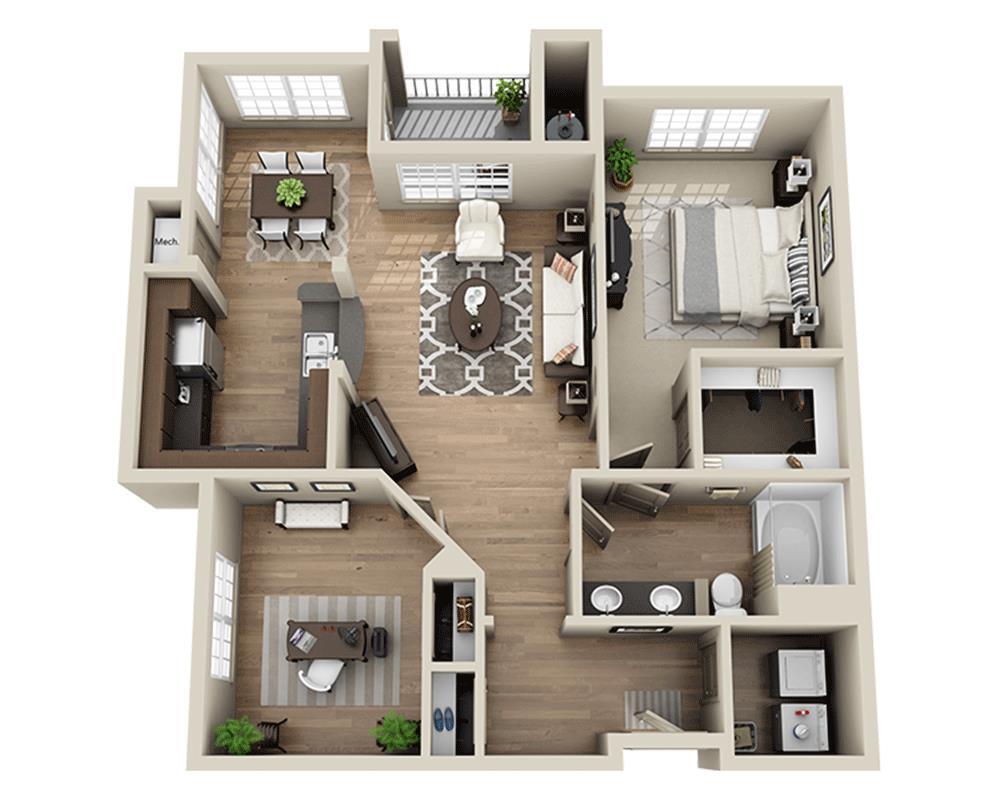 1 Dormitorio, 1 Baño, 954 pies²Precio Mensual TotalDisponible Dec 12Galería del Modelo