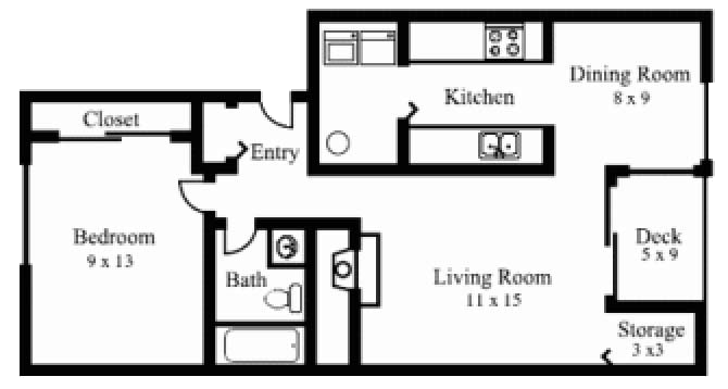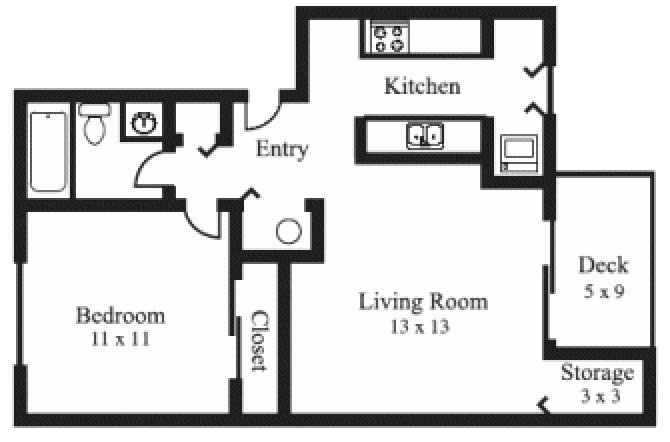 1 Dormitorio, 1 Baño, 635 pies²Disponible AhoraGalería del Modelo