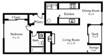 1 Dormitorio, 1 Baño, 695 pies²Disponible AhoraEl más grandeEsta opción tiene las unidades más grandes para este modeloGalería del Modelo