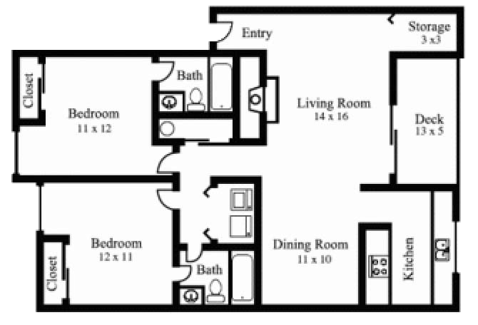 2 Dormitorios, 1 Baño, 820 pies²Disponible AhoraGalería del Modelo