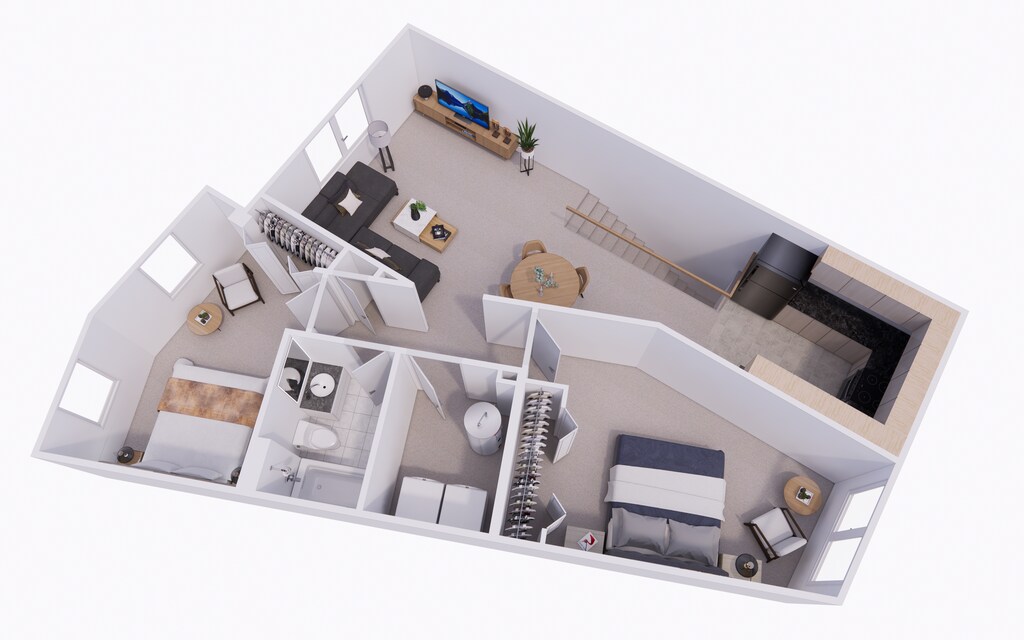 Modelo de apartamento: 2 Bed 1 BathDesde $1,5282 Dormitorios, 1 Baño, 1000 sq ftDisponible July 13, 2026![]()
