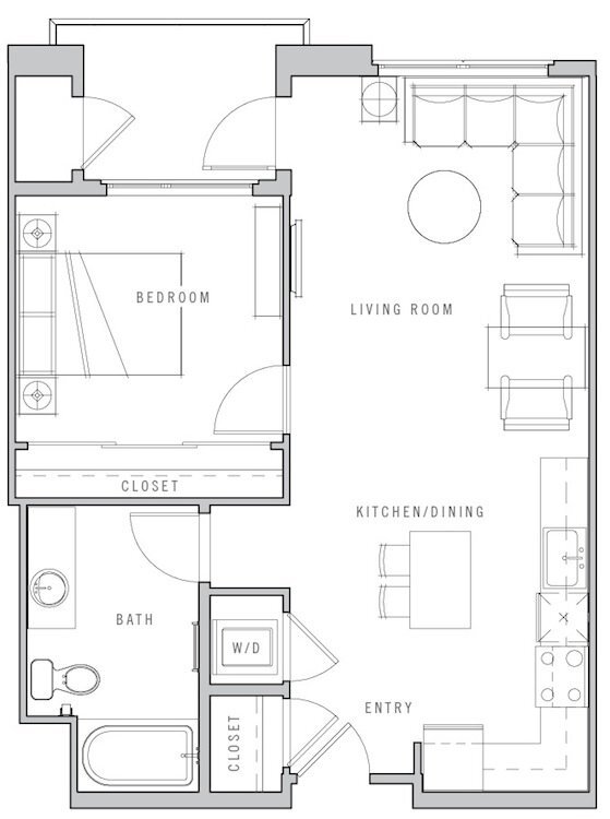 1 Dormitorio, 1 Baño, 671-681 pies²Disponible AhoraGalería del Modelo