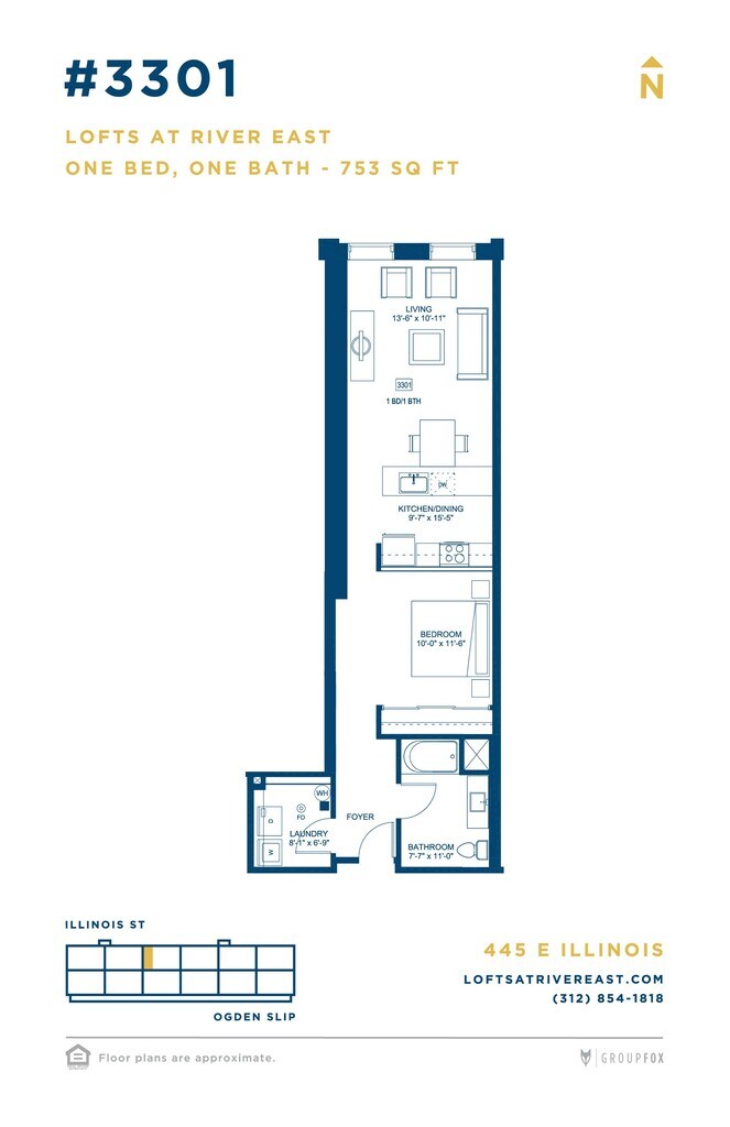 Lofts At River East se encuentra en el Barrio Streeterville y el código postal 60611 de Chicago, IL. Esta comunidad está gestionada profesionalmente por Group Fox