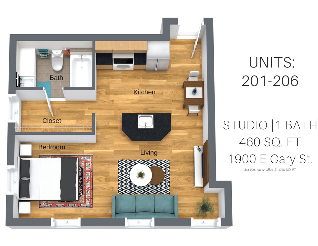 Estudio, 1 Baño, 900-1300 pies²Detalles de Diponibilidad