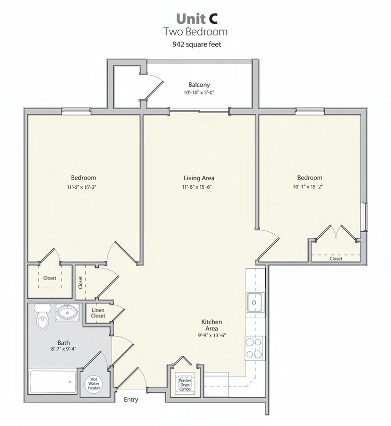 Fecha Disponibilidad Unidad Pies² Llamar para disponibilidad 2 Bedroom C 942 pies² Características y Comodidades de Modelo