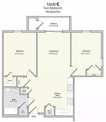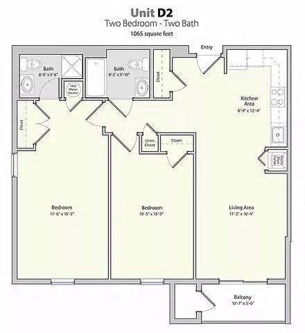 Modelo de apartamento: 2 Bedroom CLlame para Precios2 Dormitorios, 1 Baño, 942 sq ftNo Disponible![]()