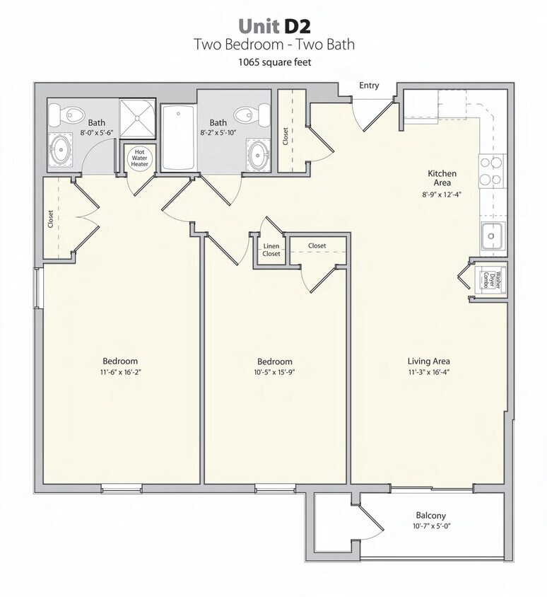 Modelo de apartamento: 2 Bedroom D2Desde $2,8452 Dormitorios, 2 Baños, 1065 sq ftDisponible Ahora![]()