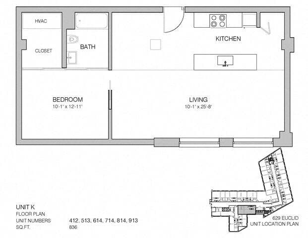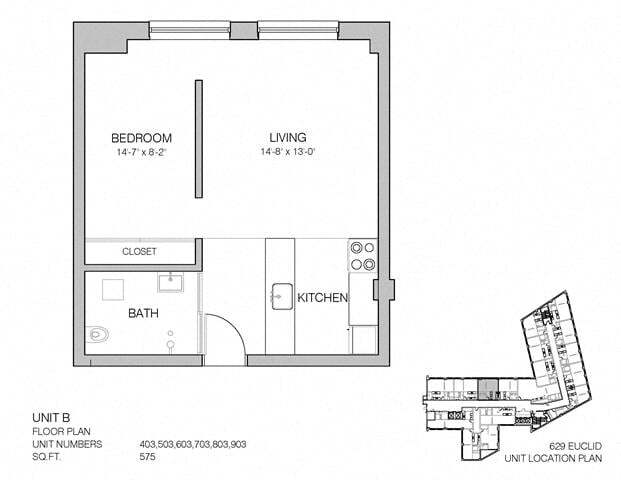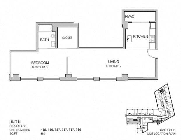 Lofts at 629 Euclid ofrece apartamentos de Estudio a 1 Dormitorio desde $985 con 544–1,115 pies cuadrados. Aquí está el precio actual y la disponibilidad:
