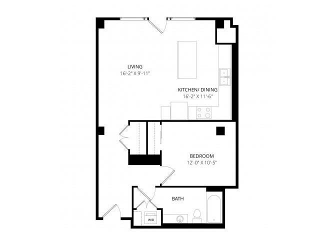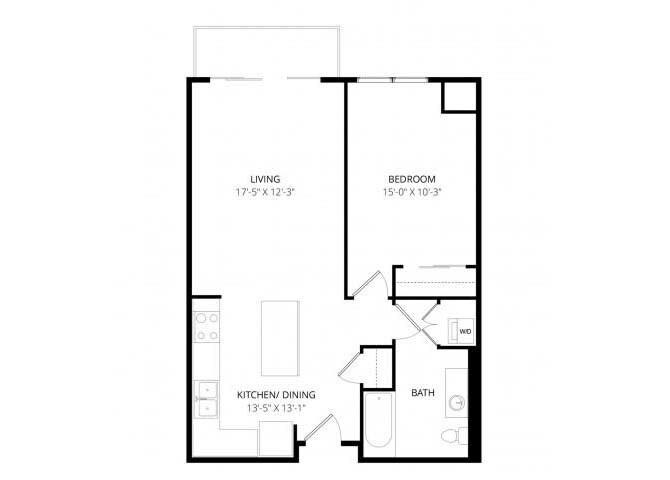 Modelo de apartamento: WabashaLlame para PreciosEstudio, 1 Baño, 503 sq ftNo DisponibleWabasha - Plano 1 Ramsey