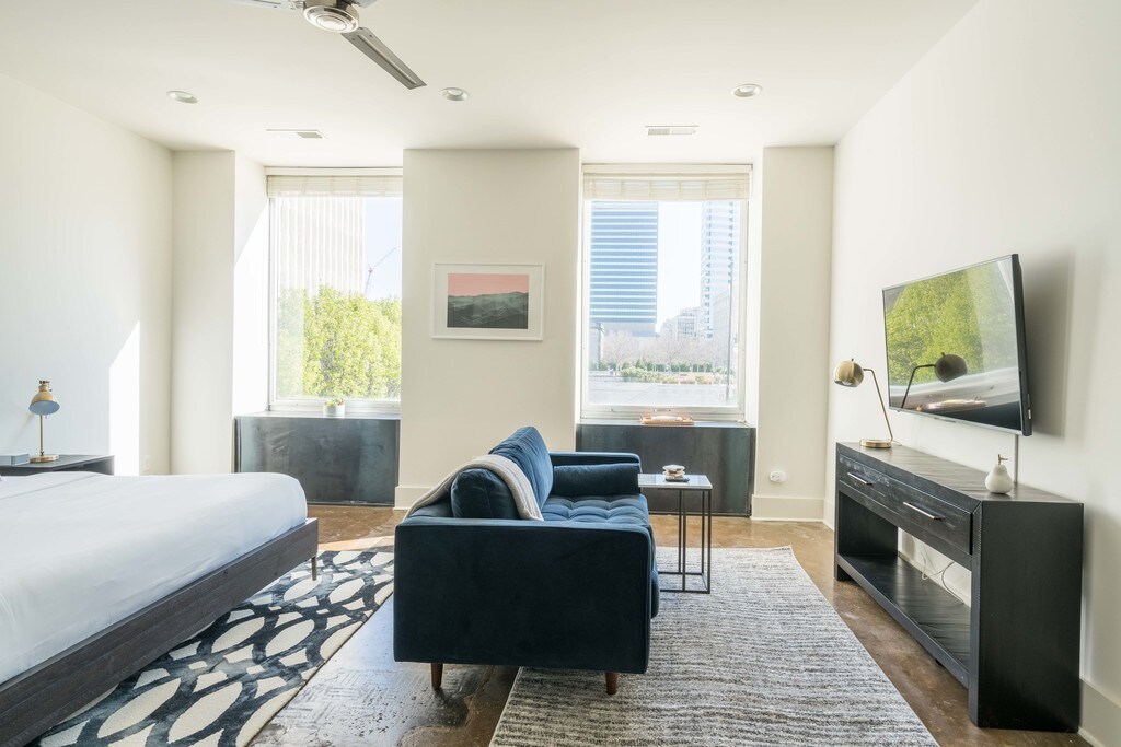 Los precios de verano con descuento: ESTU/$2.250; 1 hab/$2.850; 2 hab/$3.450 Mint House es una compañía de alquiler a corto plazo. Ofrecemos estadías versátiles en nuestros apartamentos completamente amueblados. Los servicios públicos, un lugar de estacionamiento y el uso de comodidades en el edificio están incluidos en los precios. Excelente alojamiento en el centro de la ciudad con comodidades y muebles renovados. ¡Hermosos apartamentos completamente amueblados! La conveniente ubicación en el centro de la ciudad hace que no desperdicies tiempo para llegar a donde quieres estar: Lugares de entretenimiento en vivo, eventos deportivos, restaurantes y bares, tiendas y famosas atracciones. Comodidades gratuitas: estacionamiento seguro, conexión Wi-Fi de alta velocidad, TV por streaming, gimnasio. Tu apartamento incluye estacionamiento gratuito, y acceso al gimnasio, una lujosa sala de estar en el vestíbulo, y un patio al aire libre con asientos junto a una chimenea a gas. Aprovecha las excelentes comodidades: Gimnasio Estacionamiento gratuito Wi-Fi gratuito -Lavadora/secadora -Lavavajillas -Microondas Precio con descuento de verano: STU/$2,250; 1HAB/$2,850 2HAB/$3,450