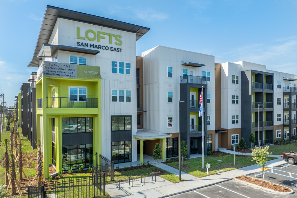 Come explore Lofts at San Marco East, a brand new community in the San Marco area of Jacksonville, Florida. Our community's sleek design and contemporary features were built with your comfort in mind. We offer a variety of studio, one, two, and three-bedroom apartments. Each home is equipped with amenities that will reflect both functionality and practicality. Contemporary kitchens, stylish appliances, impressive floor plans, and spectacular views are just some of the amenities we are proud to feature in our homes.Lofts at San Marco East not only offers ideal in-home features, we also provide our residents with unmatched perks within our community. Enjoy a fitness center, clubroom, and resident lounge with billiards tables. Controlled access entry, superb on-site maintenance, and an accommodating animal-friendly policy ensure the comfort of our residents. Why settle for less? Join us today and experience refined apartment living in the San Marco area of Jacksonville!
