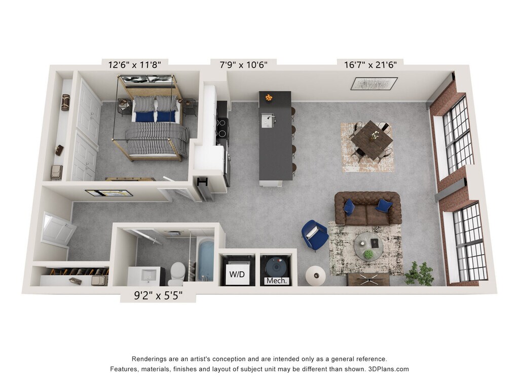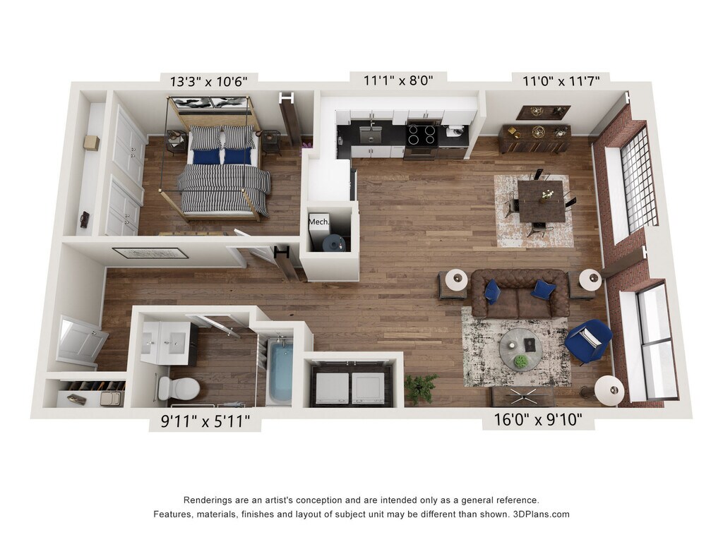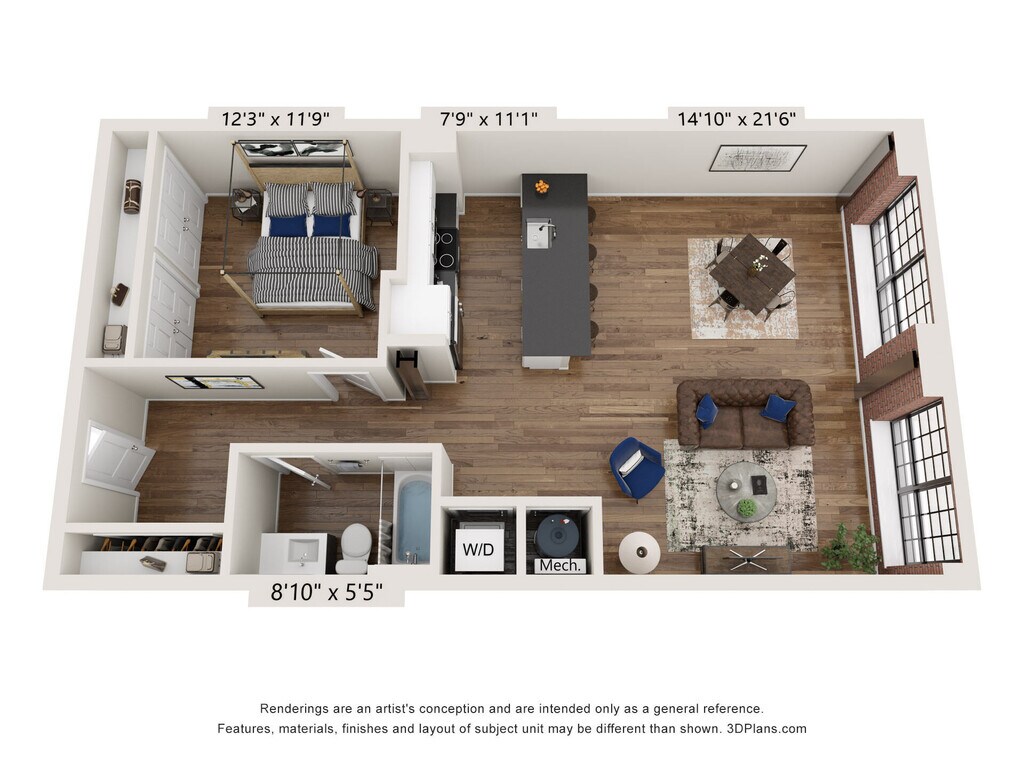 1 Dormitorio, 1 Baño, 911 pies²Disponible AhoraGalería del Modelo