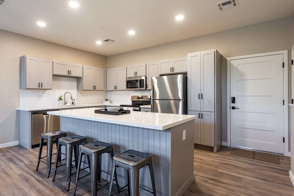 LISTA DE ESPERA PARA EL AÑO ESCOLAR 2022-23. El complejo de casas adosadas The Lofts on 8th está a menos de una milla del campus de la Arizona State University. Cada casa adosada de 4 habitaciones/4.5 baños cuenta con una terraza en la azotea privada, patio, sala de lavandería con lavadora y secadora de alta gama, además de un garaje para 2 autos adjunto con espacio para 2 más automóviles estacionados en tu entrada. Hay también estacionamiento GRATUITO para invitados. Más grande que un apartamento tradicional, hay una gran cantidad de espacio personal tanto dentro como fuera. Nuestro complejo cuenta con populares acabados modernos recientemente inaugurados. Elige entre apartamentos sin amueblar, amueblados o parcialmente amueblados. Los contratos de arrendamiento son individuales, por habitación. Estamos en diagonal a la cervecería Four Peaks. Nuestro acogedor complejo cuenta con solo 28 casas adosadas y ahora estamos en una lista de espera para 2022-23. ¡Obtén más información en loftson8th.com!