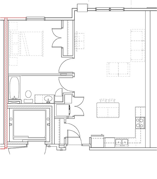 Estudio, 1 Baño, 495-606 pies²Galería del Modelo