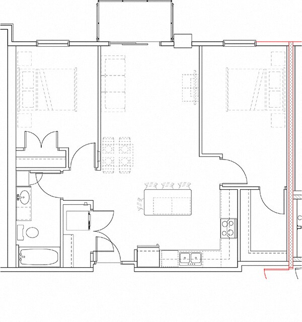2 Dormitorios, 1 Baño, 934-963 pies²Galería del Modelo