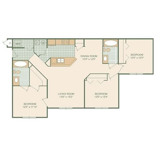 Modelo de apartamento: 3 Bedroom$1,4933 Dormitorios, 2 Baños, 1160 sq ftNo Disponible![]()