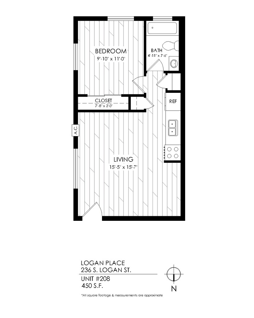 1 Bedroom - Plano 8 Unidad de apartamento: 208Modelo de apartamento: 1 Bedroom1 Dormitorio, 1 Baño, 450 sq ftDisponible Ahora![]()
