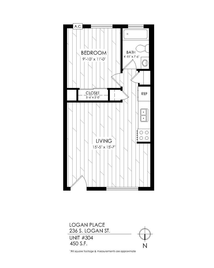 1 Dormitorio, 1 Baño, 450 pies²Disponible AhoraGalería del Modelo