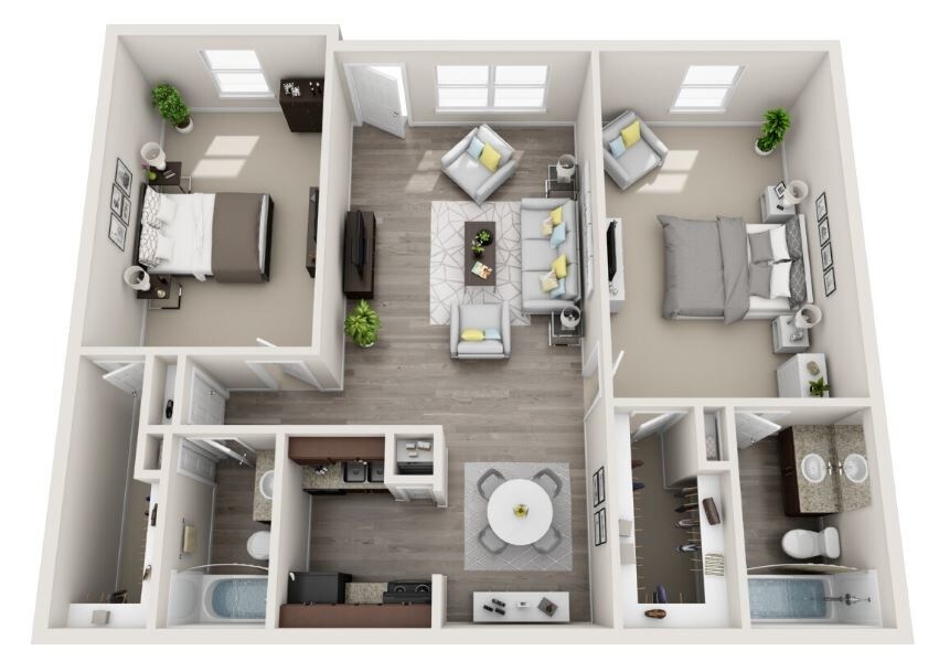 2 Dormitorios, 2 Baños, 950 pies²Disponible AhoraGalería del Modelo