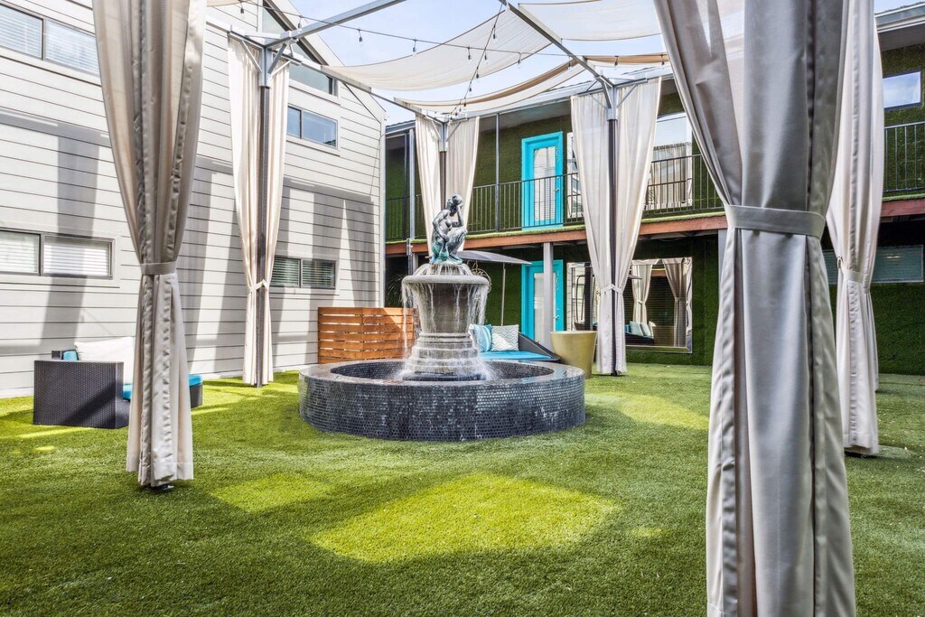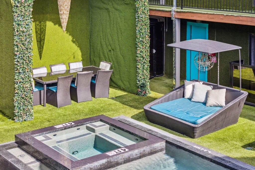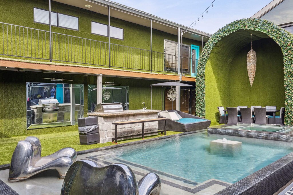 Vive aquí si piensas que el estilo británico moderno (y los detalles) son sumamente alucinantes. El estilo y el diseño londinense de primera categoría cobra vida en Lakewood. La propiedad cuenta con detalles audaces en color amarillo y telas vibrantes en un patio exuberante digno del Rey y la Reina de Inglaterra. Lugares al aire libre: Una piscina de borde infinito y un jacuzzi estilo spa de revista Un patio privado animado rodeado de robles de 100 años de antigüedad Modernos candelabros extragrandes y mobiliario de salón hecho a medida Cocina gourmet al aire libre y parrilla dignas de un rey con una mesa de comedor de 16ft y barra de 20ft con quemadores empotrados que le da un toque de lujo Topiarias de decoración en verde lima Un patio con música ambiental para crear un ambiente festivo Patios privados y patios delanteros Qué hay en el interior: Cocinas de estilo europeo contemporáneo con electrodomésticos de acero inoxidable Candelabros súper elegantes a medida Encimeras de cuarzo y mármol en la cocina y en las bañeras Piedra laja natural en los baños Piso de madera de diseñador en todos lados y mucho más. Perfil de estilo de la propiedad