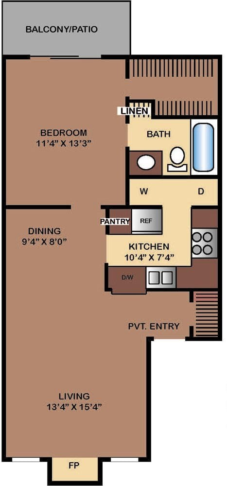 Modelo de apartamento: 1-1 FLATDesde $1,2131 Dormitorio, 1 Baño, 752 sq ftDisponible AhoraPlanosFotos![]()