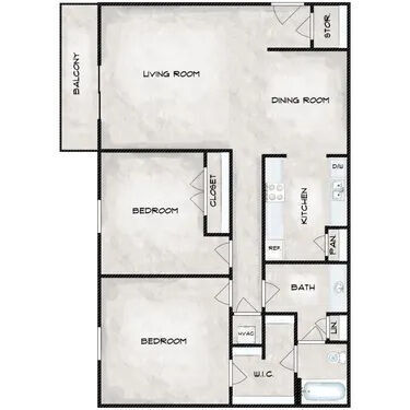 2 Dormitorios, 1 Baño, 900 pies²Disponible AhoraGalería del Modelo