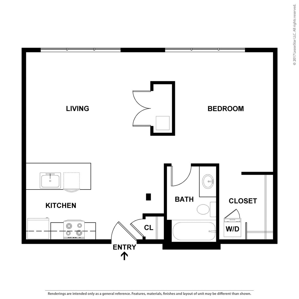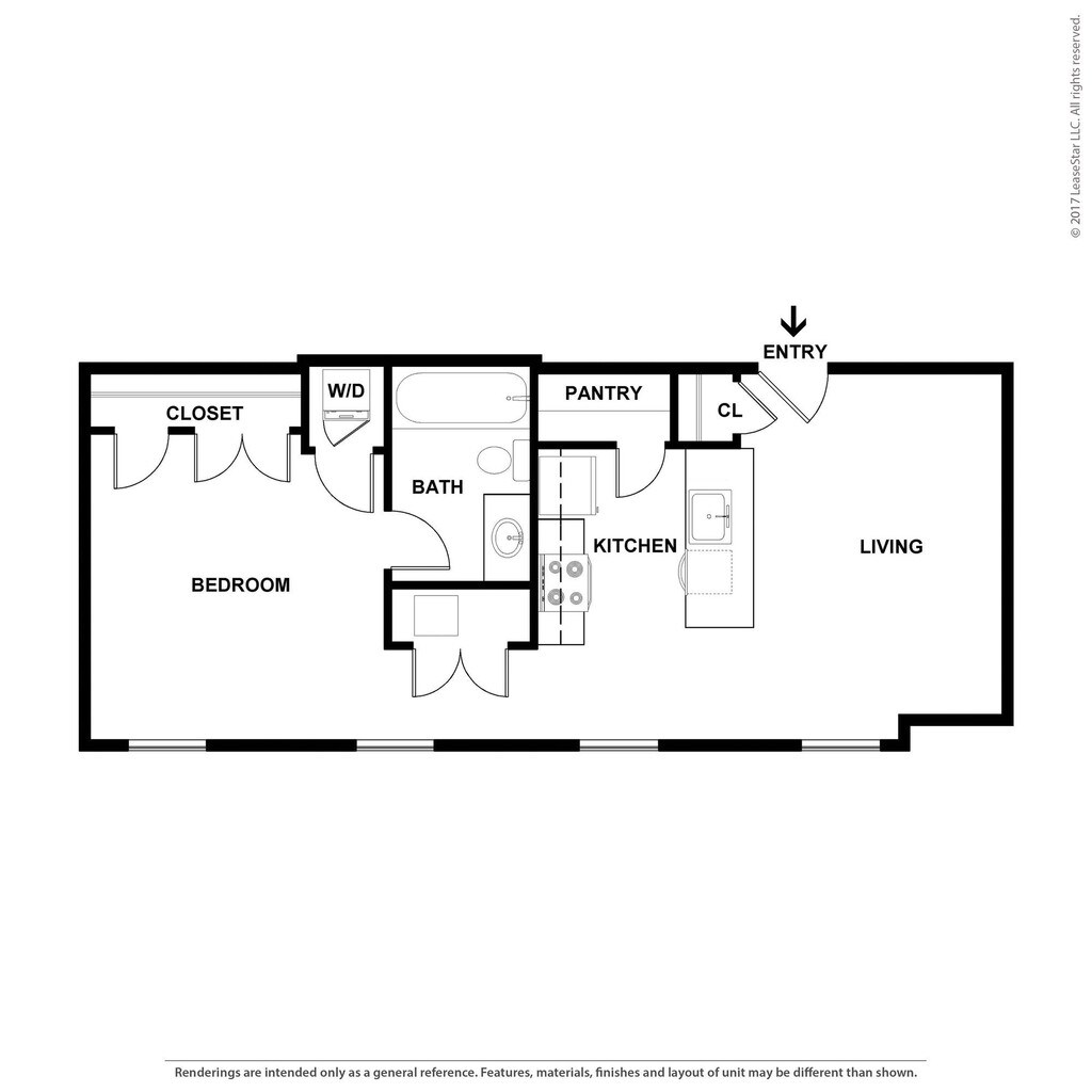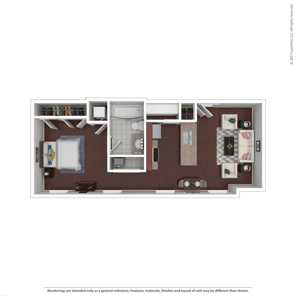 1 Dormitorio, 1 Baño, 593-630 pies²Galería del Modelo