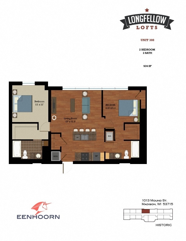 Historic- 2 Bedroom 2 Bath - Plano 1 Unidad de apartamento: H308Modelo de apartamento: Historic- 2 Bedroom 2 Bath$2,3352 Dormitorios, 2 Baños, 934 sq ftDisponible April 25, 2026![]()