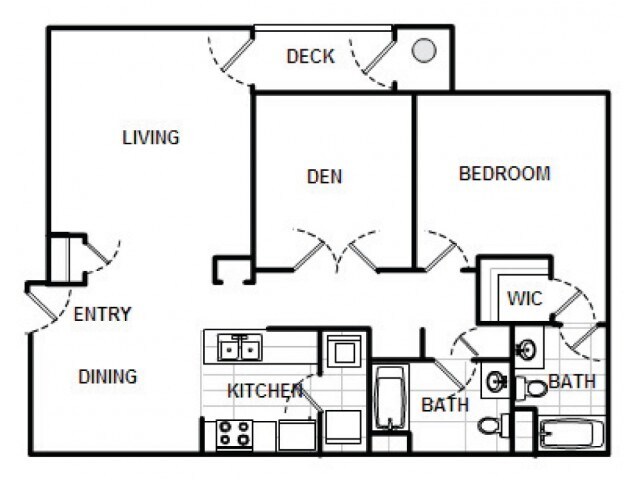 The Brookside - Plano 1 Unidad de apartamento: 01Modelo de apartamento: The Brookside1 Dormitorio, 1 Baño, 845 sq ftDisponible AhoraThe Brookside with Den