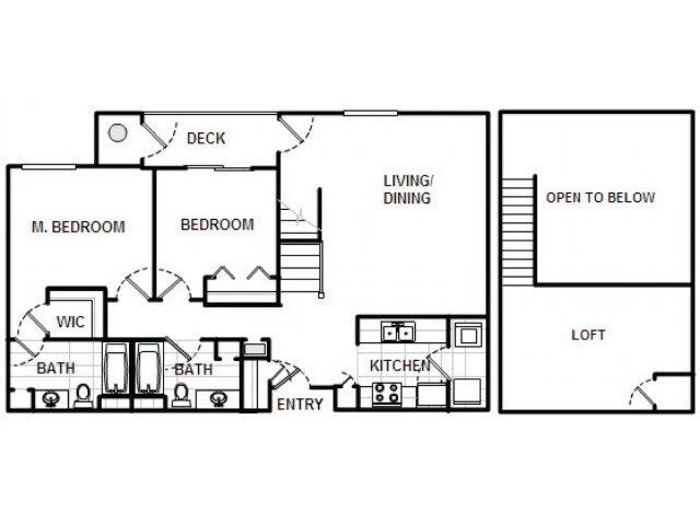 Modelo de apartamento: The Willow with Loft2 Dormitorios, 2 Baños, 1407 sq ftDisponible Ahora![]()