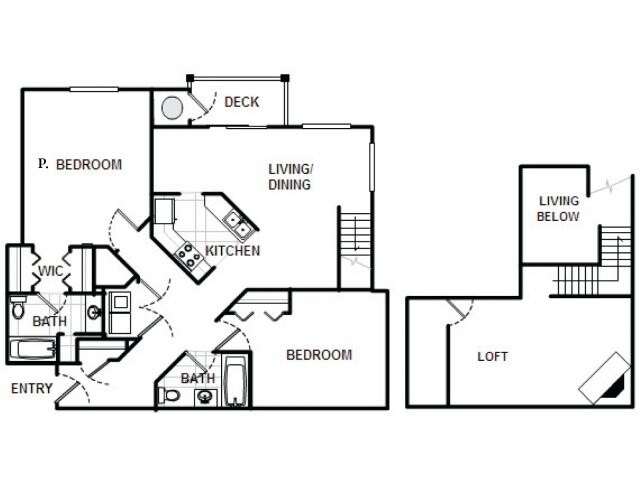 Modelo de apartamento: The Fern with Loft2 Dormitorios, 2 Baños, 1303 sq ftNo Disponible![]()