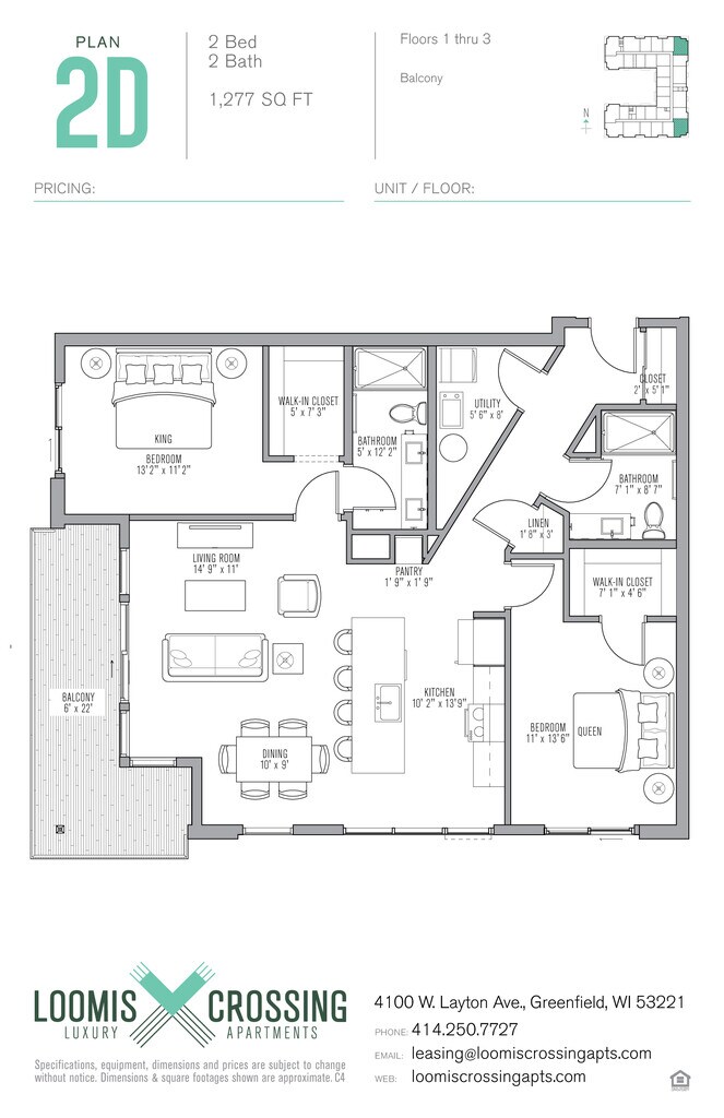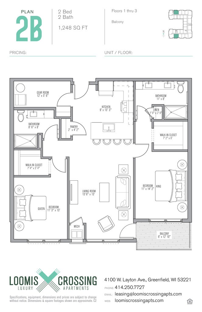 Actualmente en construcción: ¡ocupación inmediata el 1 de enero de 2024! Ahora ofrecemos recorridos por la construcción de cascos: ¡póngase en contacto con nuestro equipo de arrendamiento hoy mismo para elegir su nuevo apartamento! ¡Actualmente tenemos un incentivo de $1,200! ¡No se pierda esta oportunidad oportuna! Comunícate para obtener más información. ¡Encuentre el apartamento perfecto en Loomis Crossing! Ubicados en el corazón de Greenfield, los apartamentos ofrecen una armoniosa combinación de comodidad, conveniencia y estilo. Adéntrese en un mundo de vida moderna con espaciosos planos de planta de 1 y 2 dormitorios, grandes balcones, vestidores y lavadora y secadora. Las elegantes cocinas cuentan con encimeras de cuarzo y salpicadero de cuarzo, electrodomésticos de acero inoxidable, iluminación colgante de diseño e islas de cocina para comer. Los apartamentos ofrecen techos altos de 3 metros, ventanas del piso al techo con persianas corredizas y pisos de madera dura en las áreas de estar principales. Los servicios comunitarios incluyen: estacionamiento bajo techo, gimnasio, sala de clubes para residentes y patio comunitario con área de parrilla y mesas ignífugas. ¿Tienes mascotas? Loomis Crossing cuenta con una estación de lavado de mascotas y una amplia área de ejercicios para perros.