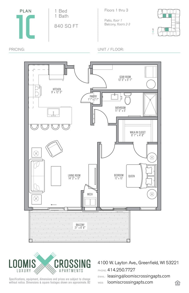 Modelo de apartamento: 1-Bedroom - 1C$1,5051 Dormitorio, 1 Baño, 840 sq ftDisponible October 15, 20251-Bedroom - 1C - Plano 1 1-Bedroom - 1G